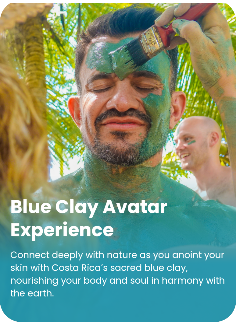Connect deeply with nature as you anoint your skin with Costa Rica’s sacred blue clay, nourishing your body and soul in harmony with the earth.