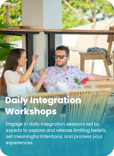 Engage in daily integration sessions led by experts to explore and release limiting beliefs, set meaningful intentions, and process your experiences.